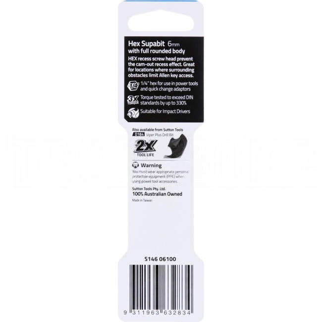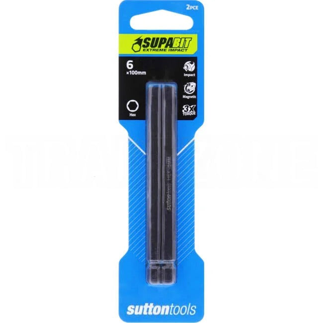 Sutton Tools 6mm x 100mm Hexagonal Impact Driverbit H6 Hexagon 2 Pack