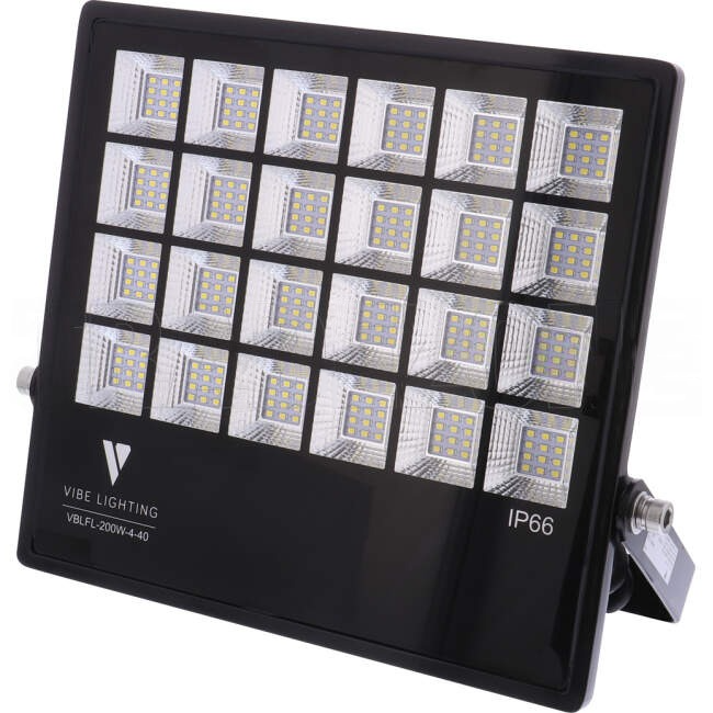 Vibe 200 Watt 500 SERIES Weatherproof IP66 LED Floodlight With 2 Metre Flex & Plug Black 4000k 19000lm