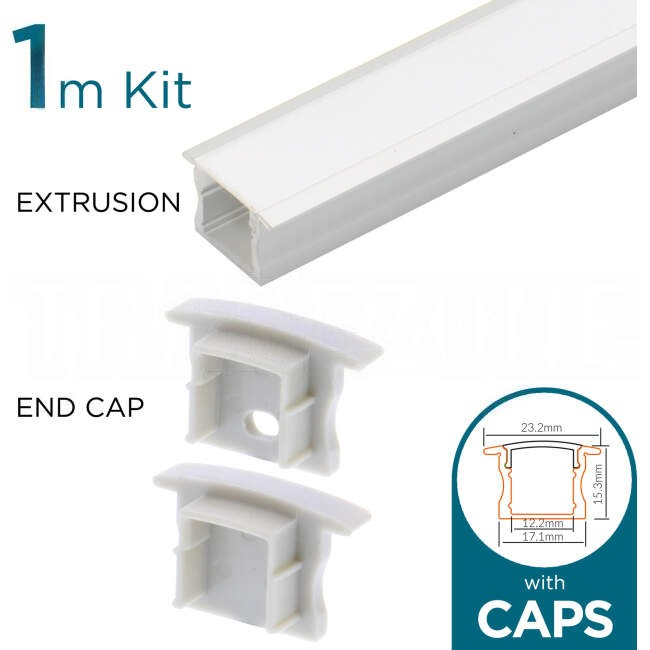 VIBE Deep Flush Mounted Aluminium Profile With Opal Matt Diffuser 1 Metre With End Caps