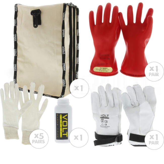 Volt Safety Class 00 Glove Kit Size 11- Includes Insulated Outer and Inner Gloves Bag and Glove Talc