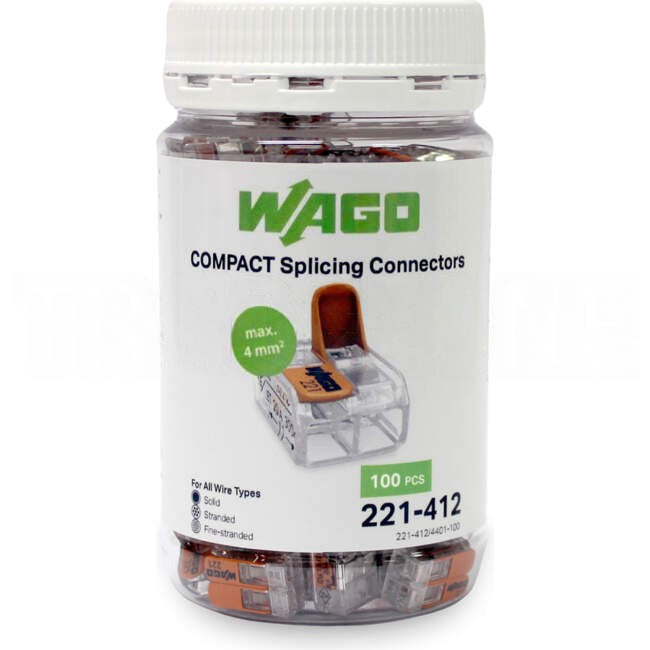 WAGO 4mm COMPACT Splicing Connector for 2 Conductors Jar of 100