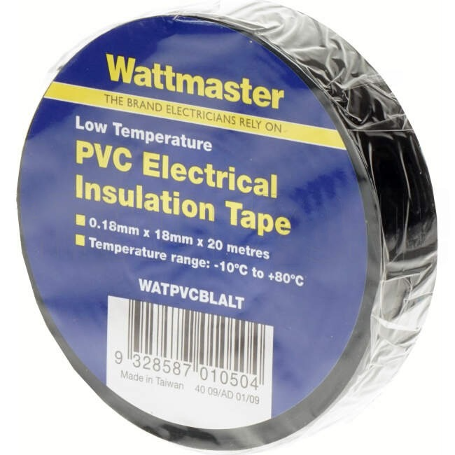 Wattmaster PVC Electrical Insulation Tape (0.8mm x 18mm x 20metres) Black Single Roll