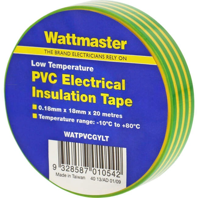 Wattmaster 18mm x 20 Metres Insulation Tape Green & Yellow Single Roll