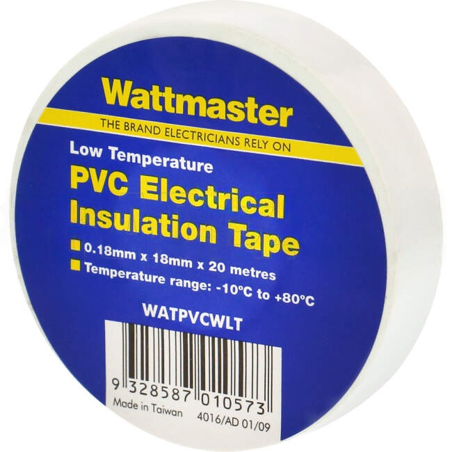 Wattmaster PVC Electrical Insulation Tape (0.8mm x 18mm x 20metres) White Single Roll