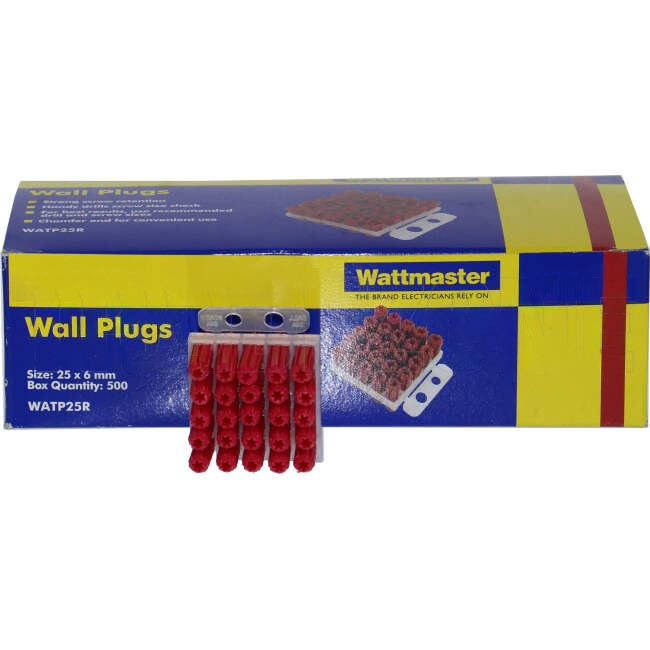 Wattmaster Anchor Wall Plug 6x25mm Red box of 20 Frames of 25 Plugs