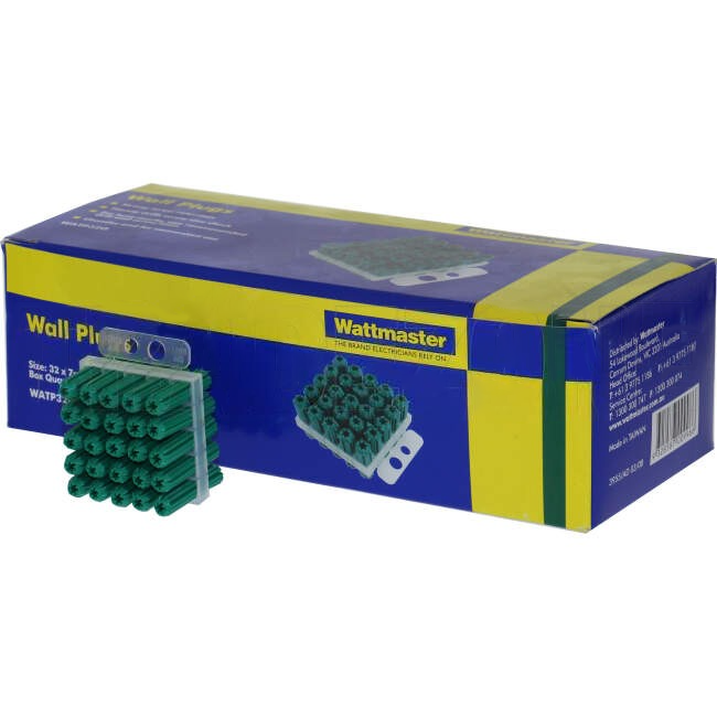 Wattmaster Anchor Wall Plug 7x32mm Green box of 20 Frames of 25 Plugs