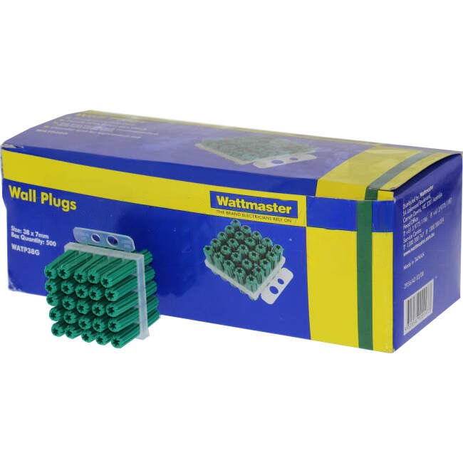 Wattmaster Anchor Wall Plug 7x38mm Green 20 Frames Of 25 Plugs