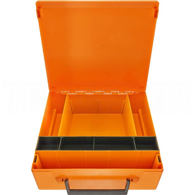 1 large tool compartment, plus 3 compartment lift-out tray and with further compartments below, with the capability to be divided by 3 with divider RC003/D, sold individually.
