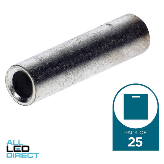 Non-insulated electro grade copper crimp links suitable for stranded to fine-stranded copper cable. Long barrel. Electro tinned finish for high conductivity. Includes entrance chamfer and centre dimpling.